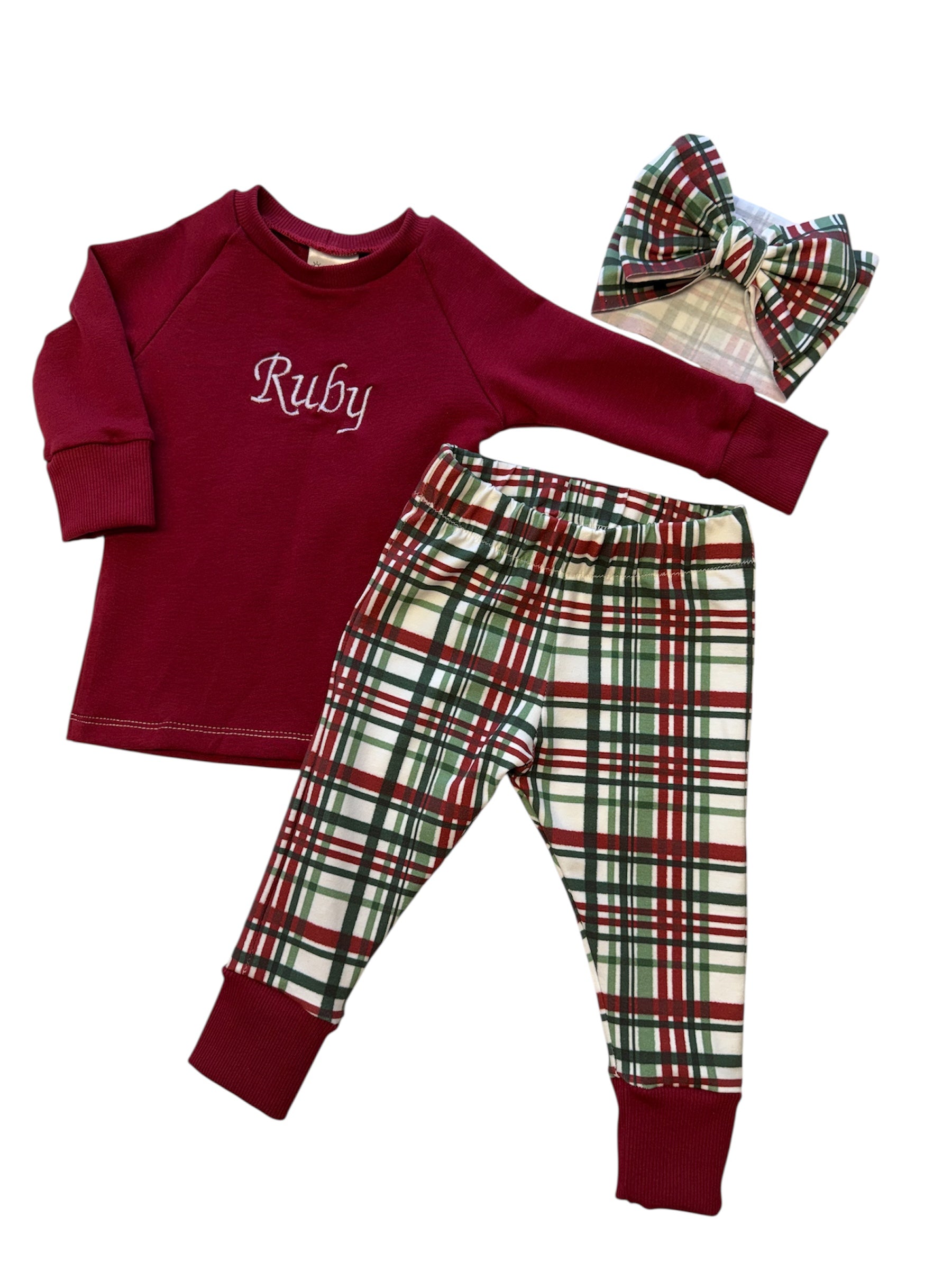Pajama Set - Raglan top long sleeve and PJ bottoms with name on the top!